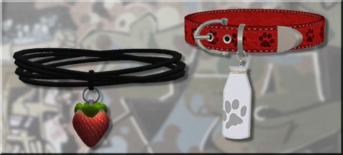 Wouldn’t you know it… right after I posted about Rebel -x-, she announced a new freebie. If you haven’t already been to her store to check out the “Nightshade” outfit I blogged a couple of days ago, be sure to TP there now to pick up this adorable little strawberry necklace for free. (Her strawberry backpack and chair are similar works of textural artistry!)