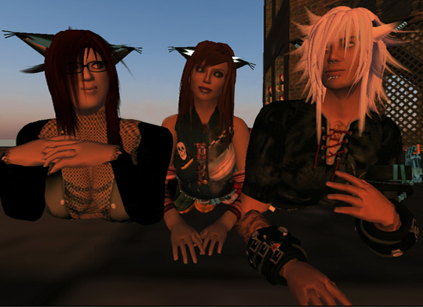 These family ties have become so strong, they even extend beyond the virtual world.  In fact I wasn’t able to interview them right away, because all three of them were spending the weekend together in real life, along with some other friends they’d met in SL.  They estimate they have around 25 people who are friends in both SL and RL… which Elora says has made these friendships much closer.