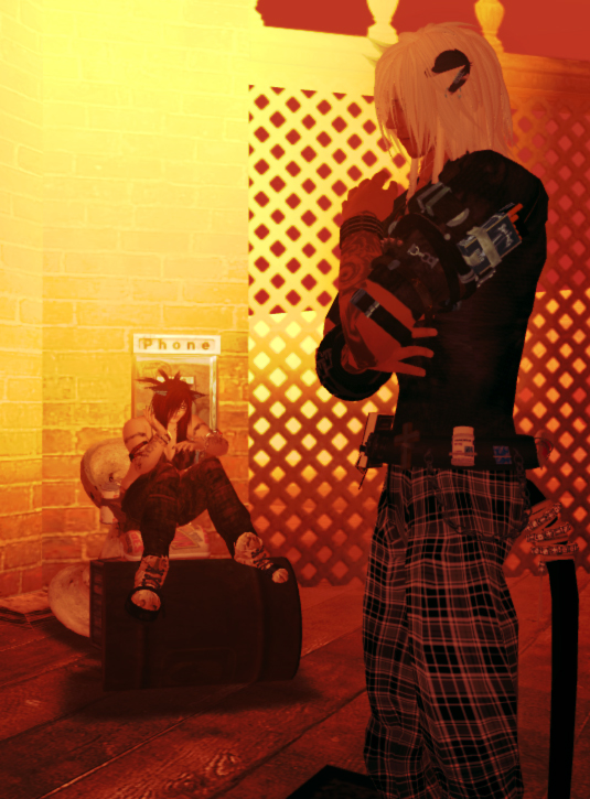 “We are online together nearly every day,” answered Elora.  “Imso is the creative guy and a DJ.”  But Imso “only DJs when I feel like it, as I never want SL to become WORK.”  Elora is a bartender and owns a DJ Agency.  Meanwhile Sonya was working in a gallery as a history consultant (yes, in Second Life) until it closed recently.  They have their own private club “Paws Off,” and are actively involved in a gallery at a sim co-owned by Imso, where he and Elora set up rotating art and photography exhibits, including some rather talented photography of their own.