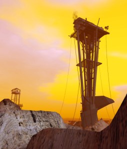 My imaginary story was inspired by the movie Mad Max: Beyond Thunderdome, and seasoned with a heavy dose of time spent exploring a fascinating place in Second Life known as The Wastelands.  It’s an area comprising multiple post-apocalyptic sims with names like The Junkyard, Fort Stygian, Bloodmoss Swamp, and The Great Fissure — all of which feature awesome landscape, buildings, and objects (not to mention avatars) that would look completely at home in any Mad Max movie, not to mention any other post-holocaust / apocalypse story setting.