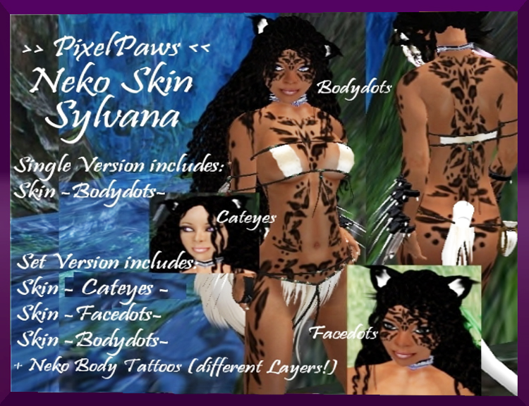 […] Whether it’s a “human” style skin with some unique eye make-up or bruises, or a full on “Neko style” skin with stripes or spots (the one in this photo is even a freebie!), I’ve tracked down some of the best for your shopping pleasure — categorized and complete with SLURLS for your convenience… all on my Virtual Neko blog. […]