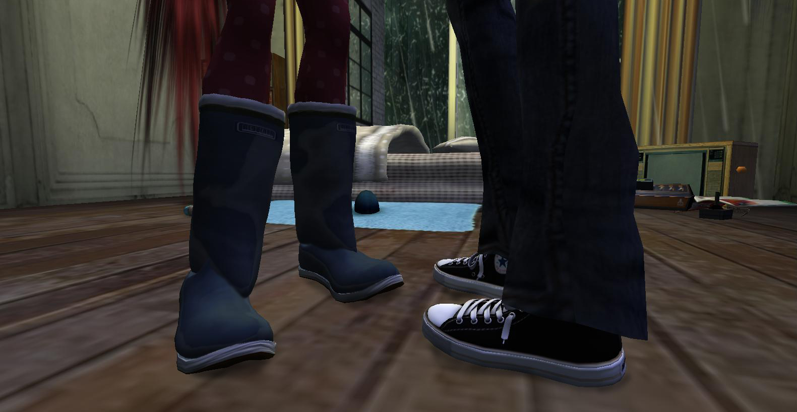 A Neko girl on a record store salary has to watch her pennies. That’s why I love this outfit from Ladybird: it comes with two camisoles (red or grey), two pairs of thigh-high socks, a skirt, and a warm hoodie jacket with prim cuffs, all for the amazing price of… $60L.  Yes, you heard that right.  Pair it with a set of good rubber boots for only $10L, tintable tights for $25L, and an adorable sushi necklace and bracelet which are currently half off when you buy an Atomic Kitty store card by November 27, and you’ve got Neko fashion that fits any girl’s budget.