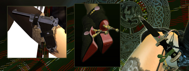 | Outfit | LPP / Le Petit Prince: Sexadoll Officer Pack (includes a top; a jacket; two kinds of stockings; black leather pants; two kinds of badges; two kinds of belts (I wore the one with a knife); three shoulder protectors (one with a cape, which I’m wearing in the top photo); a gun with a holster, scripts, and a HUD; leather gloves; a cap; and the coolest boots evaarrr.