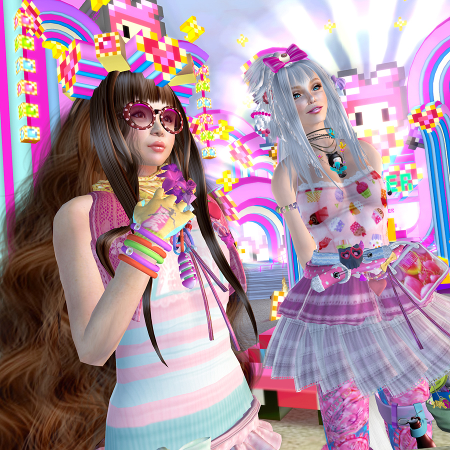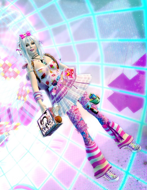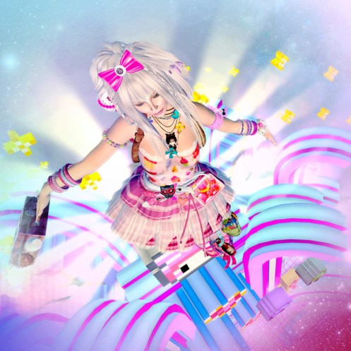 From the battlefront however, it’s a whole ‘nuther story. Allow me to introduce Mikati Slade, an incredibly talented Japanese pop artist and veteran of this strange cute war, who chose to share her tale via an amazing, 3D artistic explosion called Kuru Kuru World in Second Life.