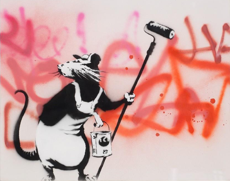 Only after he left New York and returned to Bristol did he begin using the style that eventually became his trademark: stenciled graffiti. Supposedly it was inspired by a design he spotted under a train car while hiding from law officers. He loved the freedom it gave him—being able to hit and run with clinical precision many times on one night.