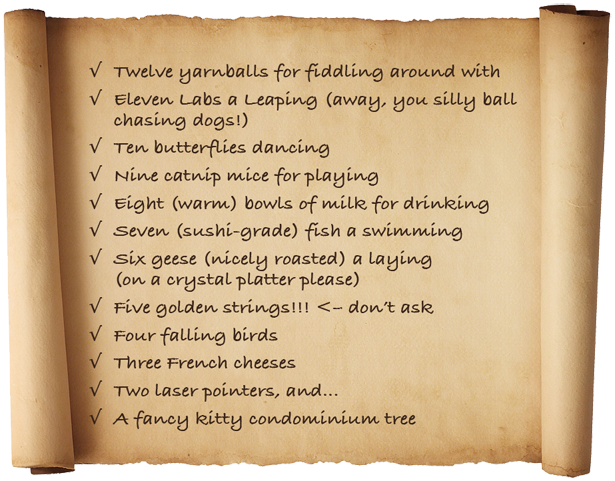My darling Santa… yes, I have received your messages… your IMs, your notecards, the “anonymous” blog comments, the private messages on Facebook, even the hand-written notes delivered personally by Rudolph (while adorable, still a fairly obvious tip of the fur-trimmed hat as to its sender).