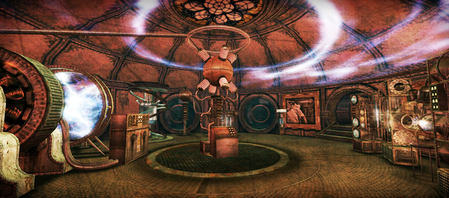 Imagine numerous rooms filled with incredible Tesla-like creations ranging from imaginary to scientific (think Tesla meets Jules Verne), a recreation of Tesla’s laboratory, his private library, and an intricate solar system sculpture. Every object and thoughtful detail featured exquisitely crafted, artfully shadowed textures — clearly the work of a photoshop master.